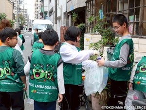 当日は、大通り公園、横浜橋通商店街周辺の2つのコースに分かれ清掃活動を行う中で、地域の方からの「ありがとう!」というお声がけをいただきながら積極的にごみを拾い集める姿は、スマイルアンバサダーとして頼もしくあり、楽しく街の美化に取り組むことができました。