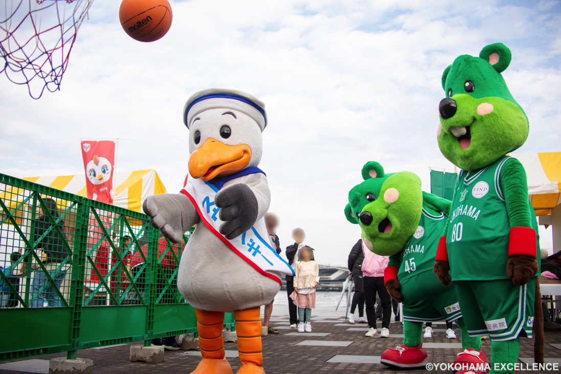 また、Y.S.C.C.横浜公式マスコットの「ハマピィ」や、先日横浜武道館へもお越しいただいた「ターフィー」もブースに遊びに来てくれました!