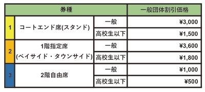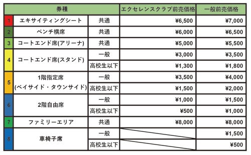 ・アリーナ席 エクセレンスクラブ販売、一般販売ともに500円の金額UP