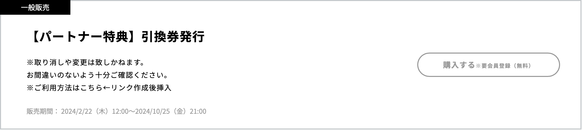 【パートナー特典】引換券発行の「購入する」をクリックします。