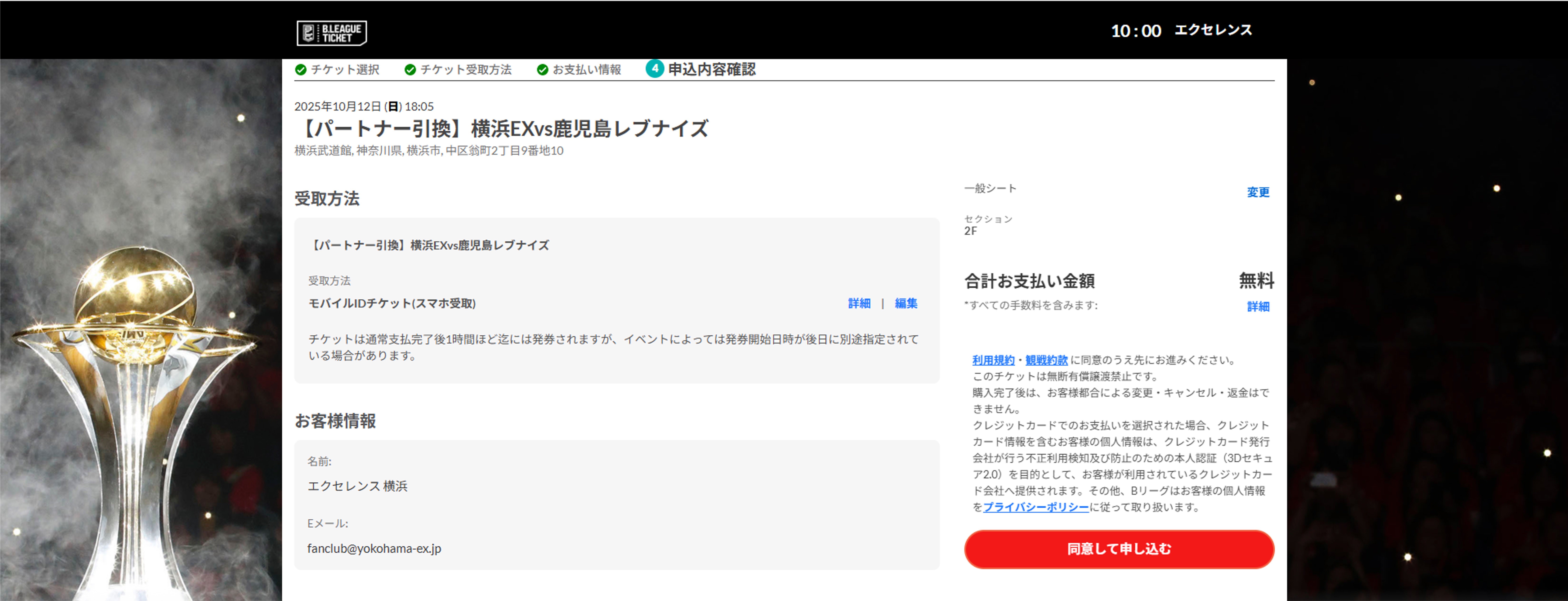 ※ご登録いただいたメールアドレスに申込完了メールが届き、Bリーグ スマホチケットアプリに2次元バーコードが表示されます。