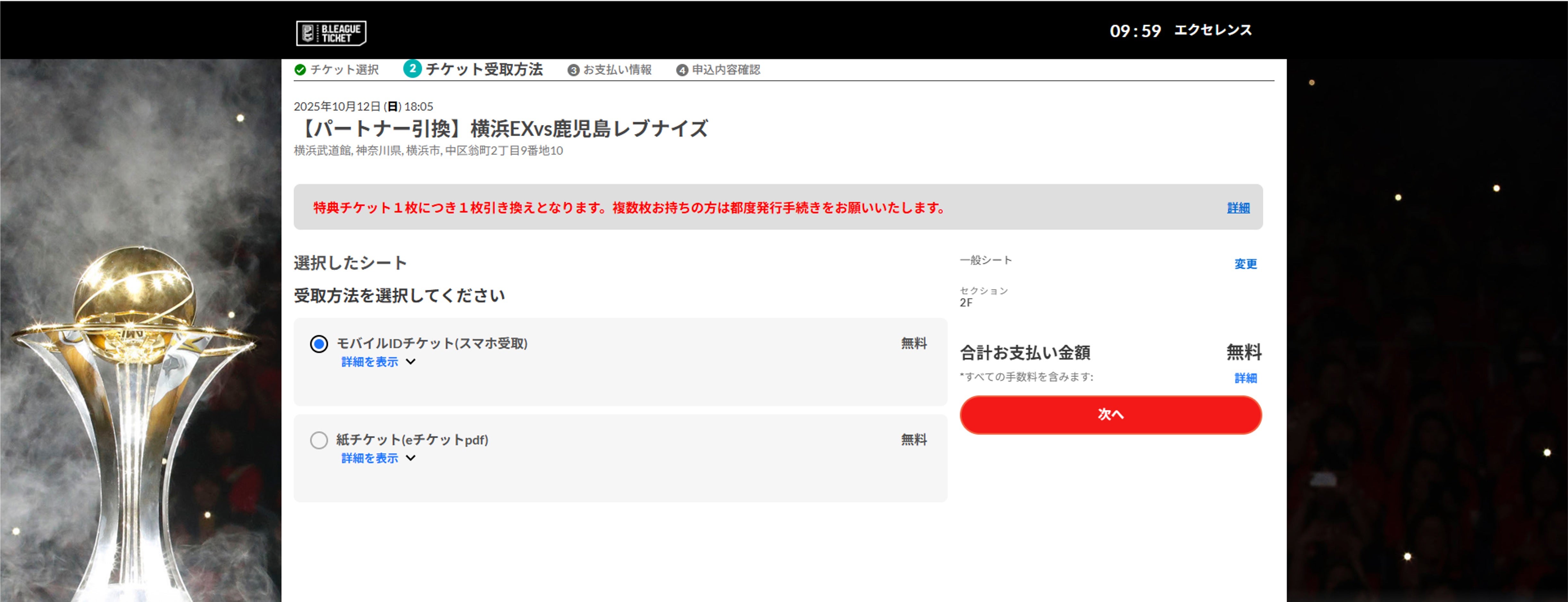 ※ご登録いただいたメールアドレスに申込完了メールが届き、Bリーグ スマホチケットアプリに2次元バーコードが表示されます。
