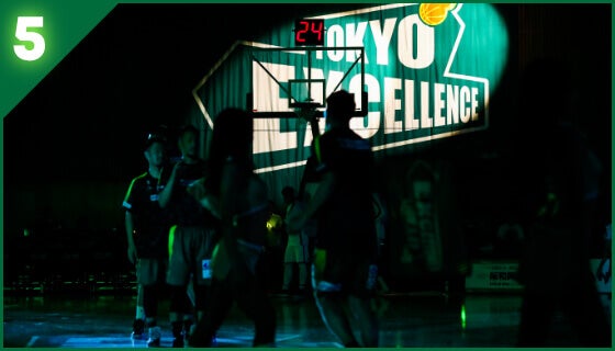 スターティング5の選手がコートへ入場!試合開始が近付く緊張感とワクワク感をお楽しみください!