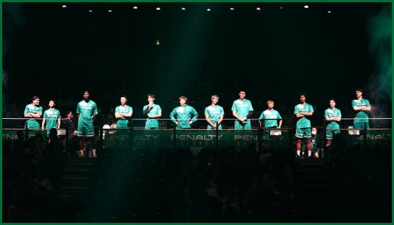 スターティング5の選手がコートへ入場!試合開始が近づく緊張感とワクワク感をお楽しみください!