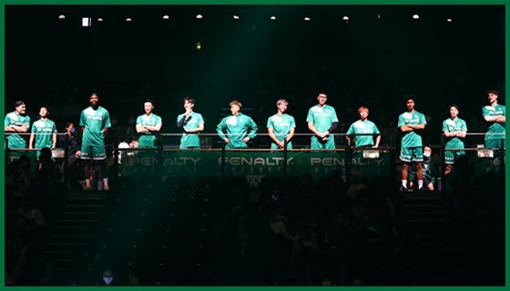 スターティング5の選手がコートへ入場!試合開始が近づく緊張感とワクワク感をお楽しみください!