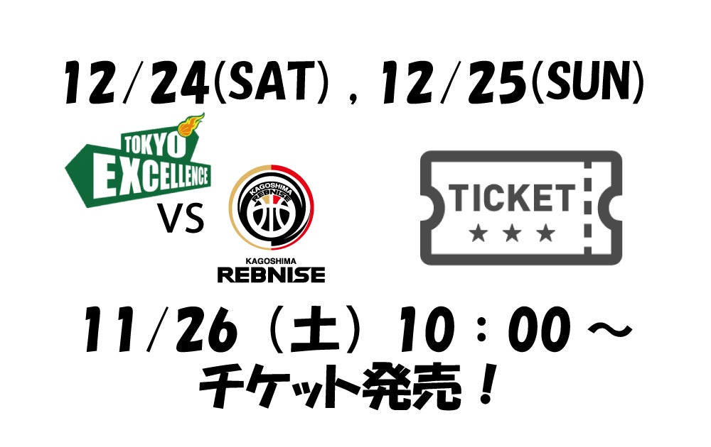 11/26(土)10:00~第13節vs鹿児島レブナイズ戦チケット販売開始!
