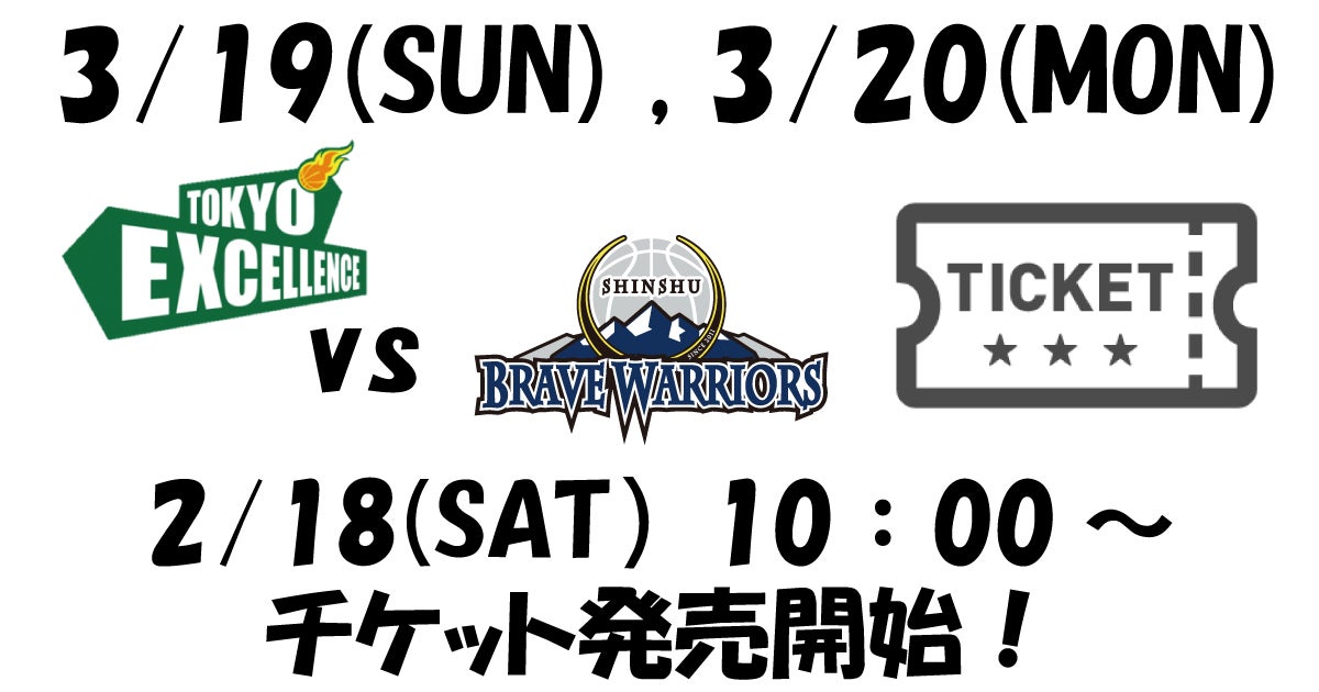 3/19(日)、20(月・祝)vs信州戦、2/18(土)チケット発売!