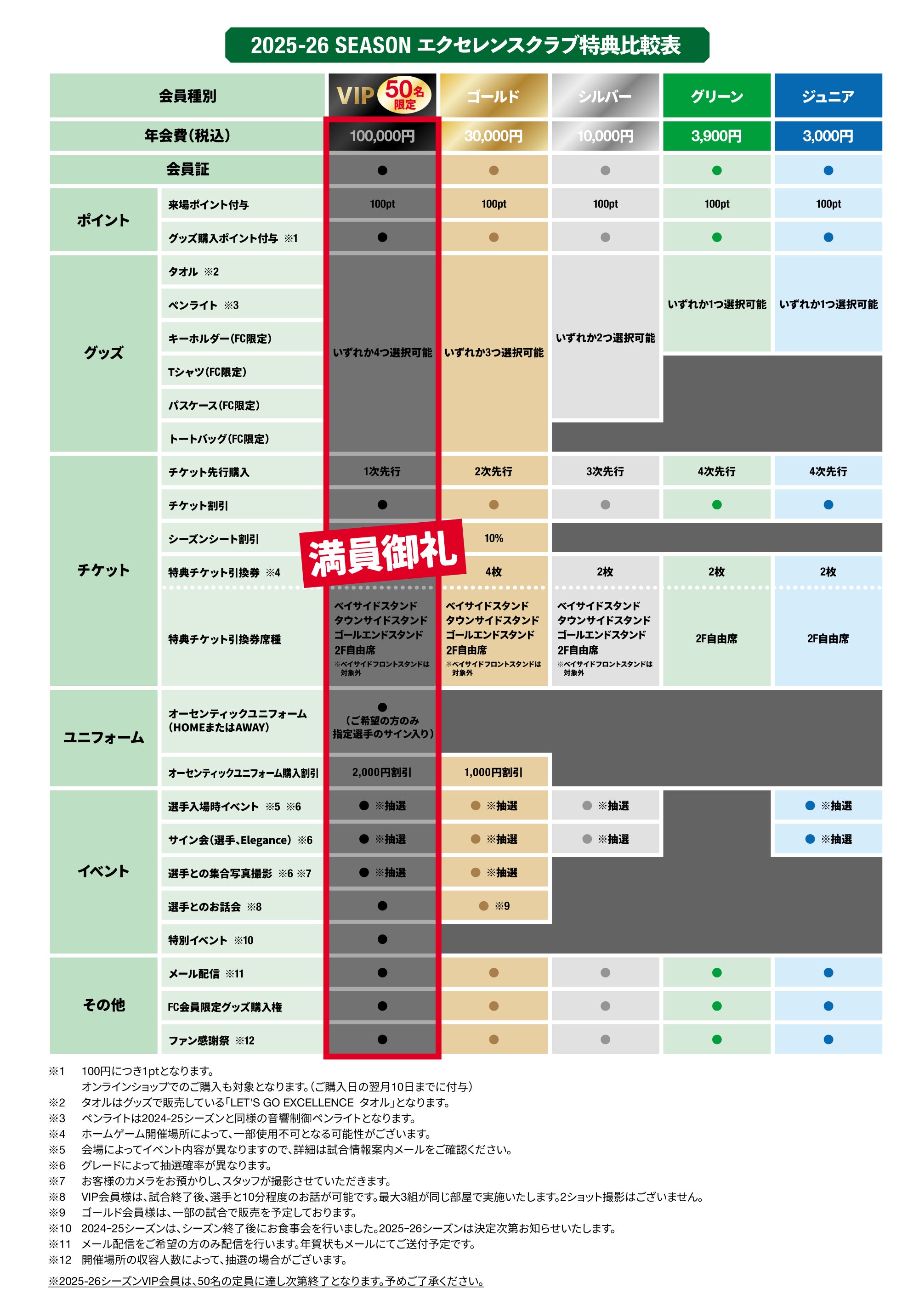 ※会員グレード及び特典内容の刷新を図るため、2025-26シーズンへの自動継続ではございません。