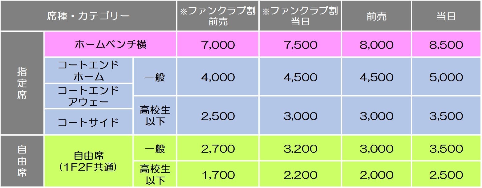 よりお得に試合を楽しんていただけるよう、新たにファンクラブ割を設定しております!