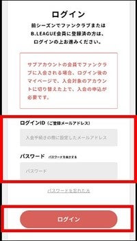 ① B.LEAGUE会員のIDとPWを入力してログインする