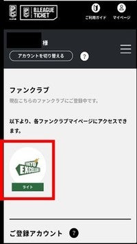 ② 加入されているファンクラブ一覧から東京エクセレンスを選択