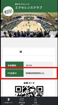 ③ 赤枠のエクセレンスクラブの「FC会員ID」を表示