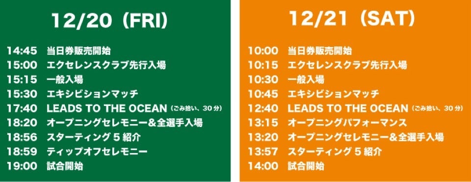 日程 | 2019年12月20日(金)19:00 Tip off 2019年12月21日(土)14:00 Tip off |