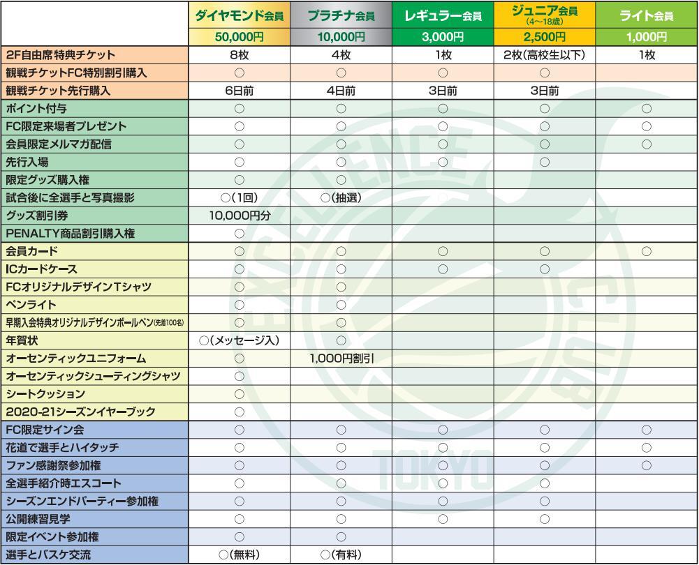 【2020-21シーズンエクセレンスクラブ特典一覧表】