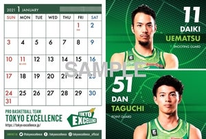 2020-21シーズン東京エクセレンスの所属選手がデザインされた1月~6月までの卓上カレンダーです。