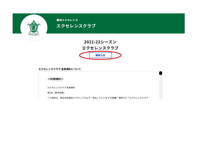 ※ファンクラブ会員様ご自身で東京エクセレンスのファンクラブを退会されていない方は、2021-22シーズンのエクセレンスクラブにご入会の際に「継続」の表示がされますが、