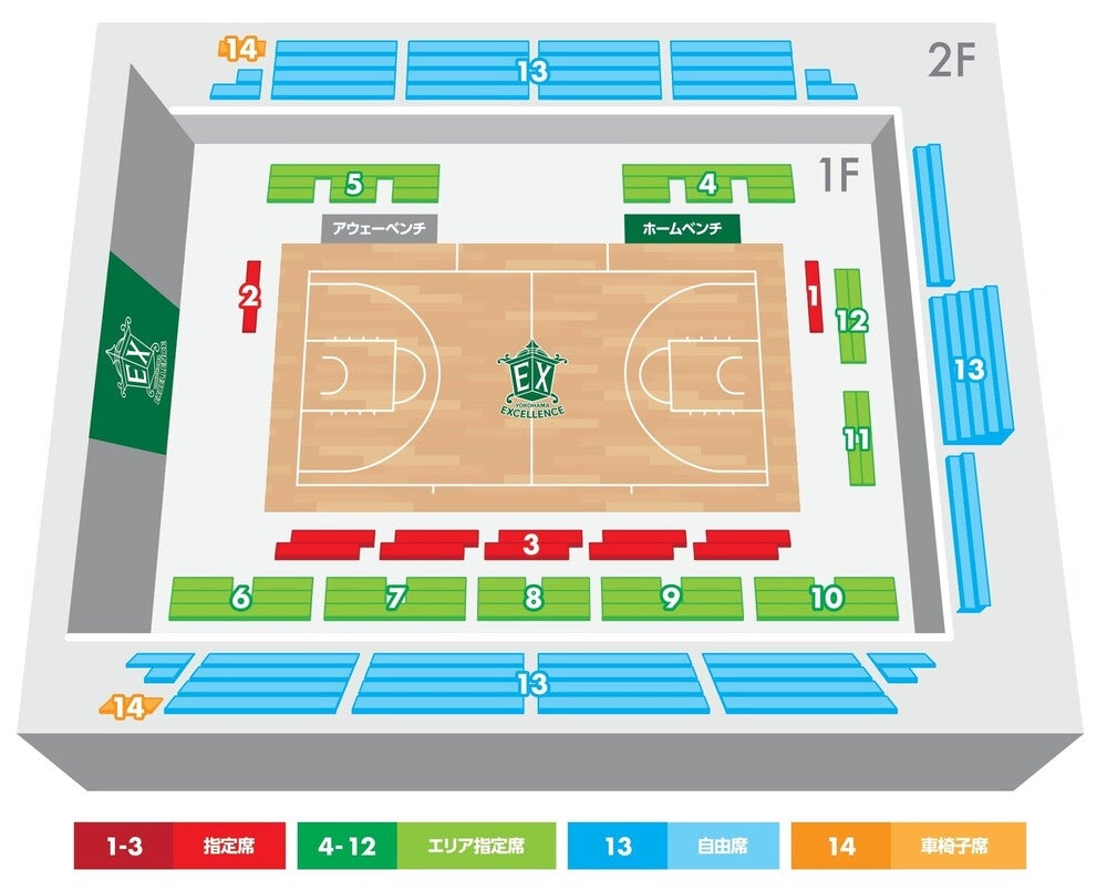・横浜武道館での対象席種は「1Fスタンドエンド席」、小豆沢体育館では2F自由席となります。