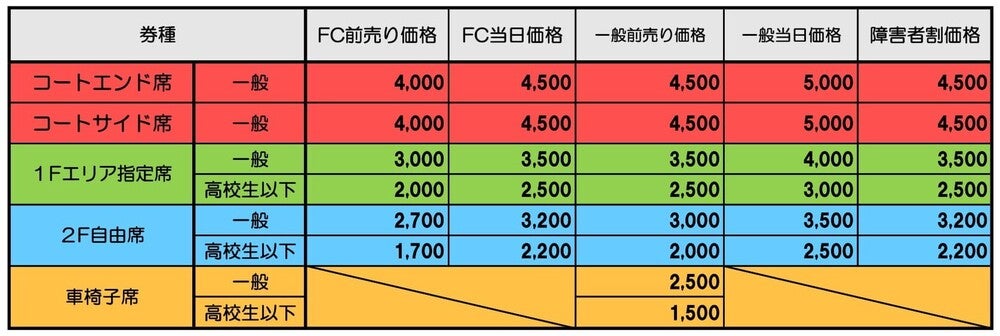 第3・4節チケット販売及び小豆沢体育館開催時の座席図・チケット価格についてのお知らせ