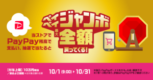 詳細はこちら:https://paypay.ne.jp/event/paypay-jumbo-20211001/