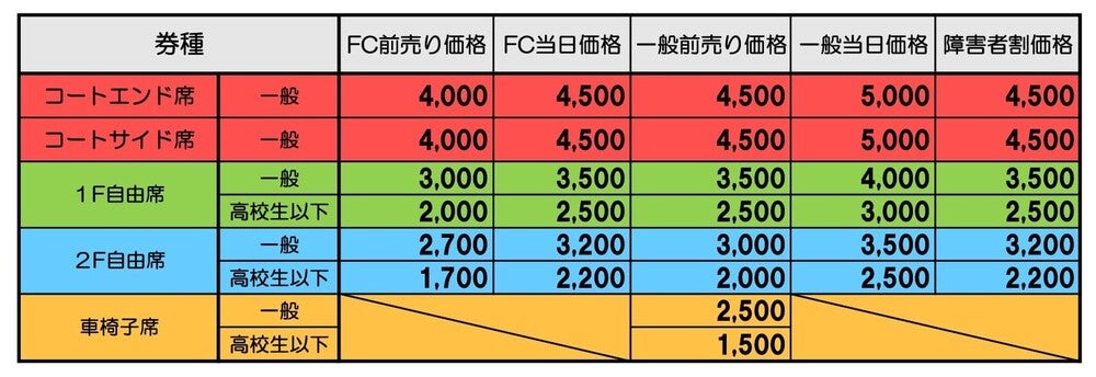 ・トッケイセキュリティ平塚総合体育館での対象席種は2F自由席となります。