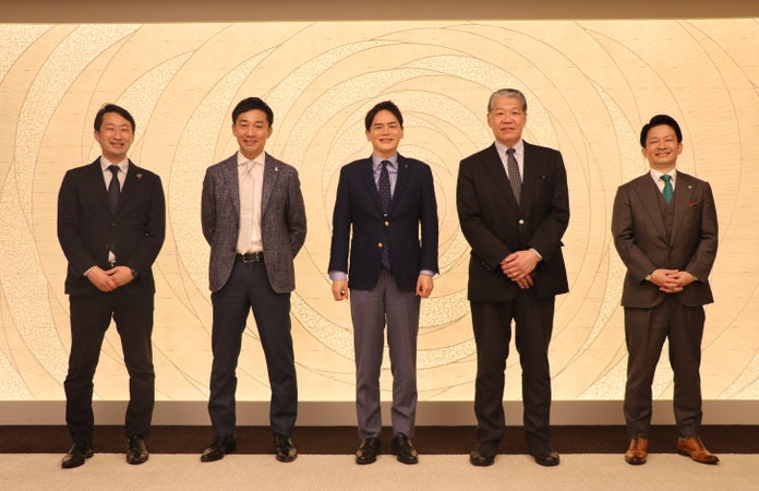 写真左から白井英介氏・島田慎二チェアマン・横浜市 山中竹春市長・堀井幹也理事長・向井昇