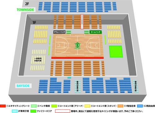 ホームとアウェイをより明確に分け、コートエンドホームは「エクセレンスグリーン」に、コートエンドアウェイは、「アウェイチームのチームカラー」でそれぞれ座席を埋めて欲しいという想いから