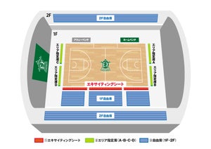 横浜武道館では、「1階指定席ベイサイド」「コートエンドホーム(スタンド)」