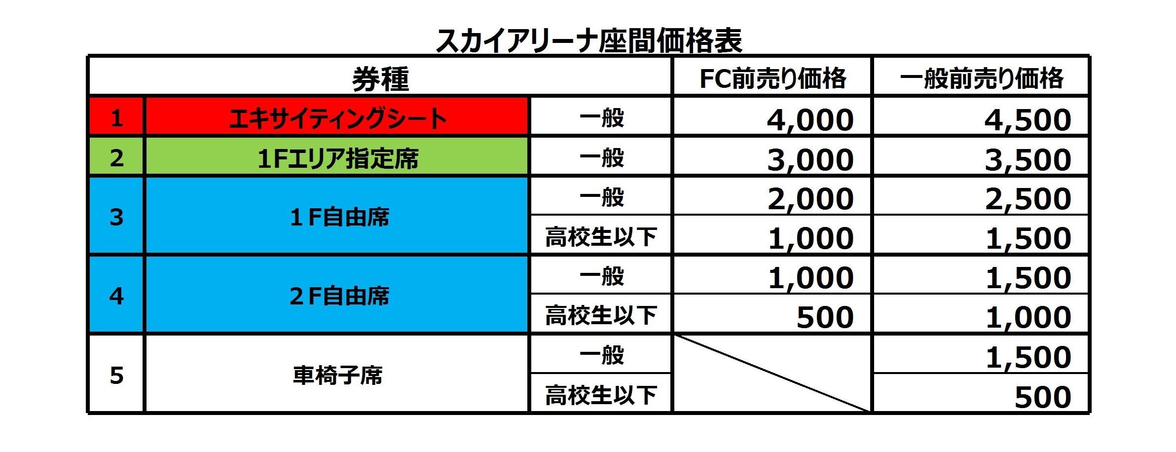 スカイアリーナ座間では2F自由席となります。