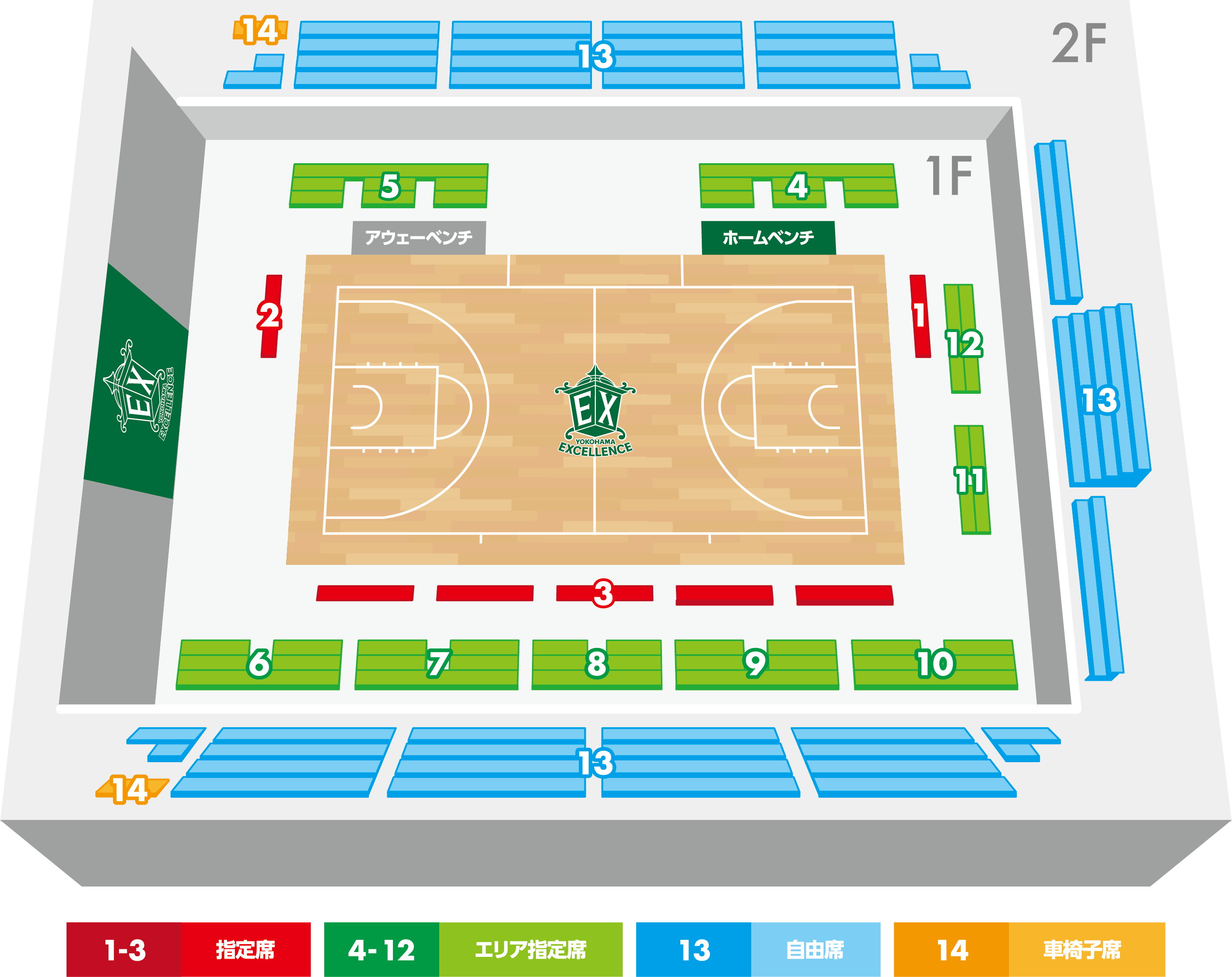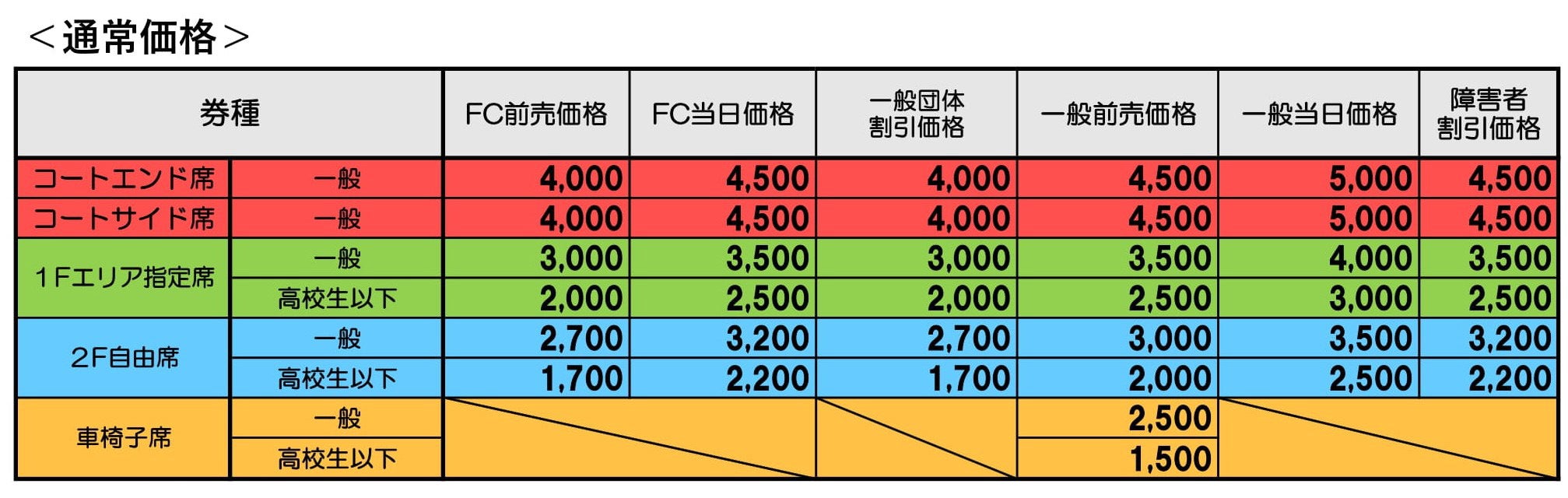 ※車椅子ご利用のお客様は同伴者1名無料 座席図14のエリアで観戦いただけます。