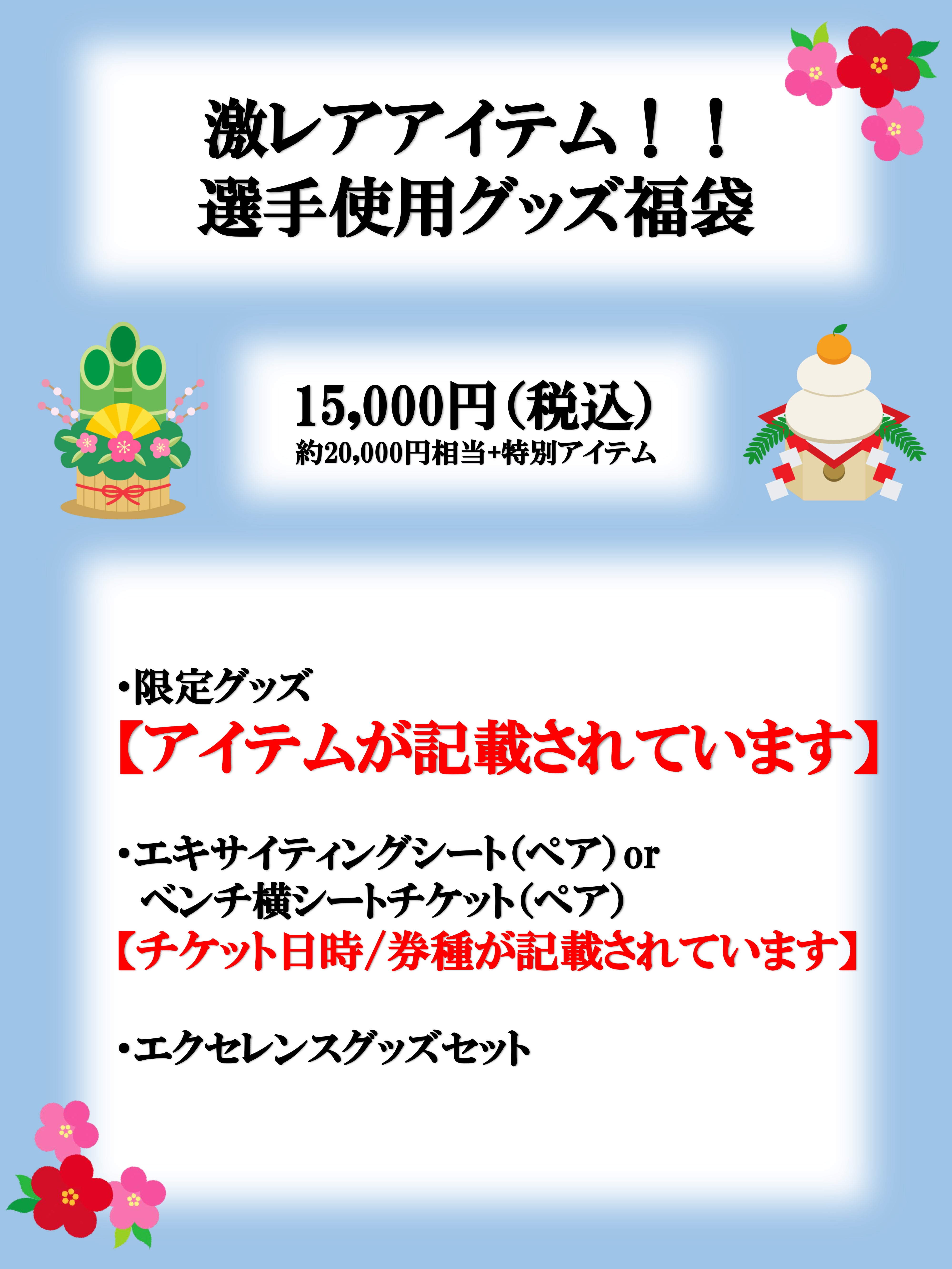 この度、1/6(金)、1/7(土)の湘南ユナイテッドBC戦にて数量限定で福袋を発売することが決定いたしました! 魅力的なアイテムを多数ご用意しておりますので、是非この機会にお買い求めください♪ 。