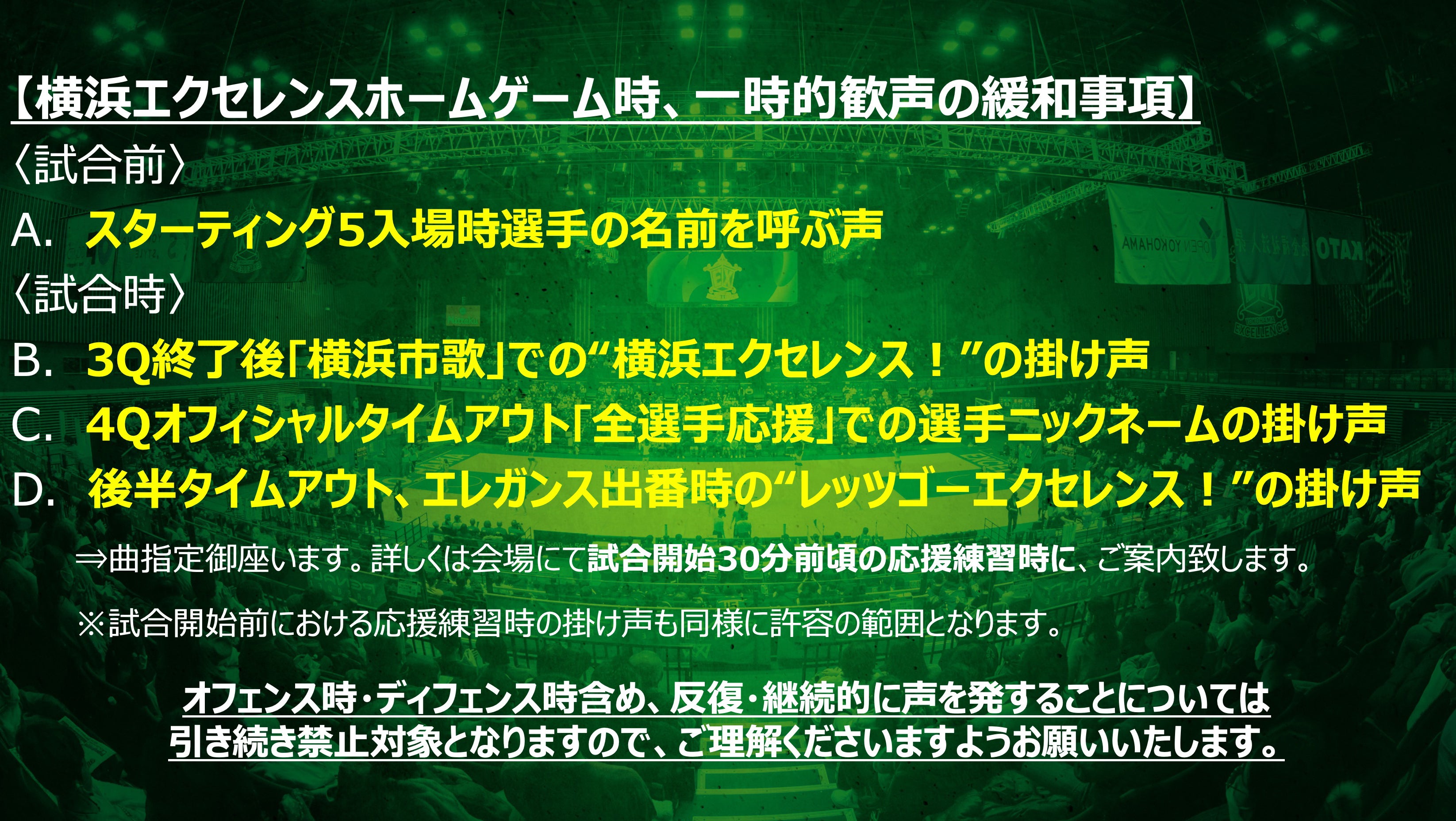 横浜エクセレンス ホームゲームにおける「一時的な歓声等」の緩和について
