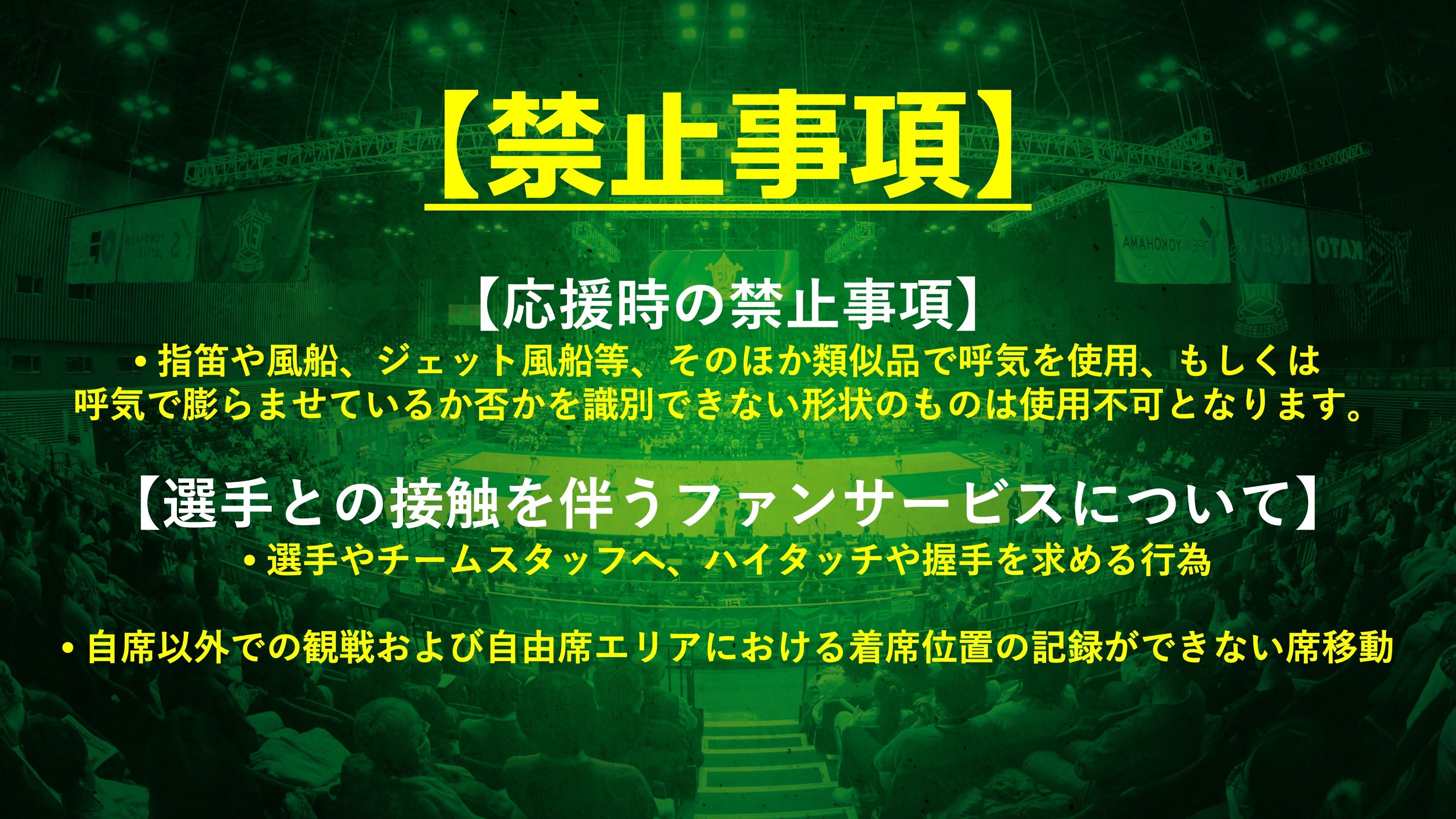ご来場頂くお客様に対して少しでも安心して観戦して頂くために、ご理解くださいますようお願い申し上げます。