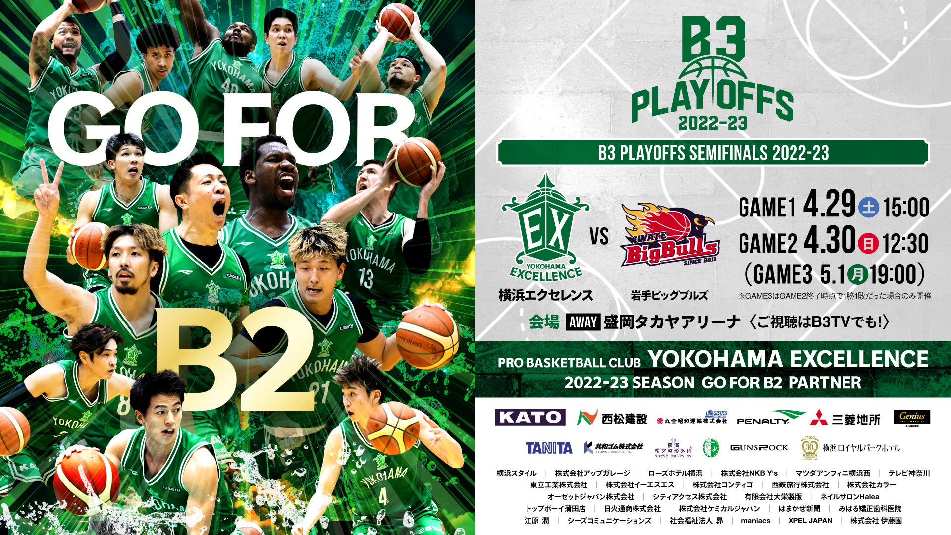 2枠しかないB2昇格、及びその先にあるB3優勝に向け、絶対に負けられない横浜エクセレンスの【B3 PLAYOFFS SEMIFINALS 2022-23】(※準決勝)は「岩手ビッグブルズ」とアウェーでの試合となります。