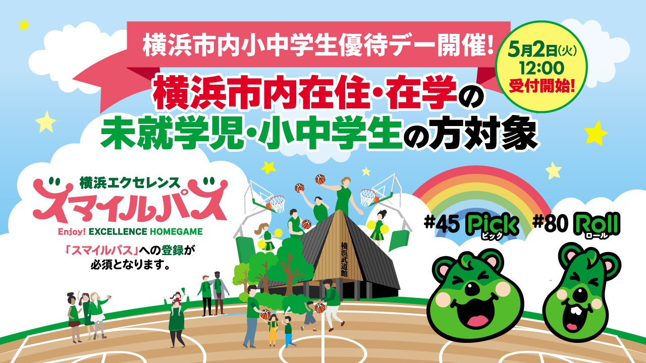 この度、「横浜市内小中学生優待デー」では、「スマイルパス」のお申し込みを通じて、多くの皆さまにお得に試合観戦をしていただけるよう、特別優待価格でご購入いただけるチケットを販売いたします。