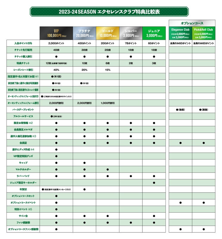 ※なお、2023-24シーズン「エクセレンスクラブ」への自動継続は停止させて頂いております。