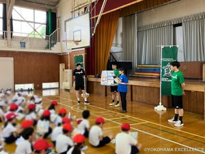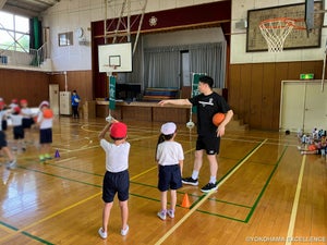 7月6日(木) ・14日(金)に大塚製薬株式会首都圏第二支部様のご協力により、体温の調節機能が未発達である子どもたちへ熱中症の危険性を伝える「熱中症対策啓発活動出張授業」を横浜市立白幡小学校にて開催いたしました。その講習の一環としてバスケットボールクリニックを実施し、横浜エクセレンスからは俊野達彦が参加いたしました。講習を受けることで熱中症に気を付けながらバスケットボールを楽しむことができました。