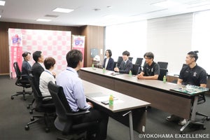 この度、横浜移転2年目となった昨シーズンのご報告及び、横浜移転3年目となる今シーズンへ向けての意気込みをお伝えするため、横浜市南区役所へ表敬訪問をさせていただきました。今回実施させていただいた表敬訪問には、7月より代表取締役社長へ就任した桜井直哉、ゼネラルマネージャーの石田剛規、今シーズン新加入の#43 今川友哲、そして2023-24シーズン横浜エクセレンス専属チアリーダーズEleganceメンバー・横浜エクセレンスチアダンスアカデミー講師のAoiが参加いたしました。