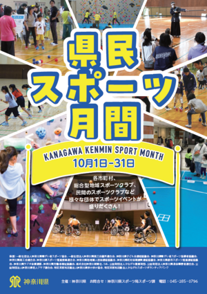 「県民スポーツ月間」とは、平成29年3月に制定された神奈川県スポーツ推進条例及び神奈川県スポーツ推進計画「エンジョイ・スポーツ! かながわプラン」において、県民の皆様がスポーツに親しみ、スポーツに対する関心及び理解を深めていただくことを目的としたキャンペーンで、10月を「県民スポーツ月間」として定められました。