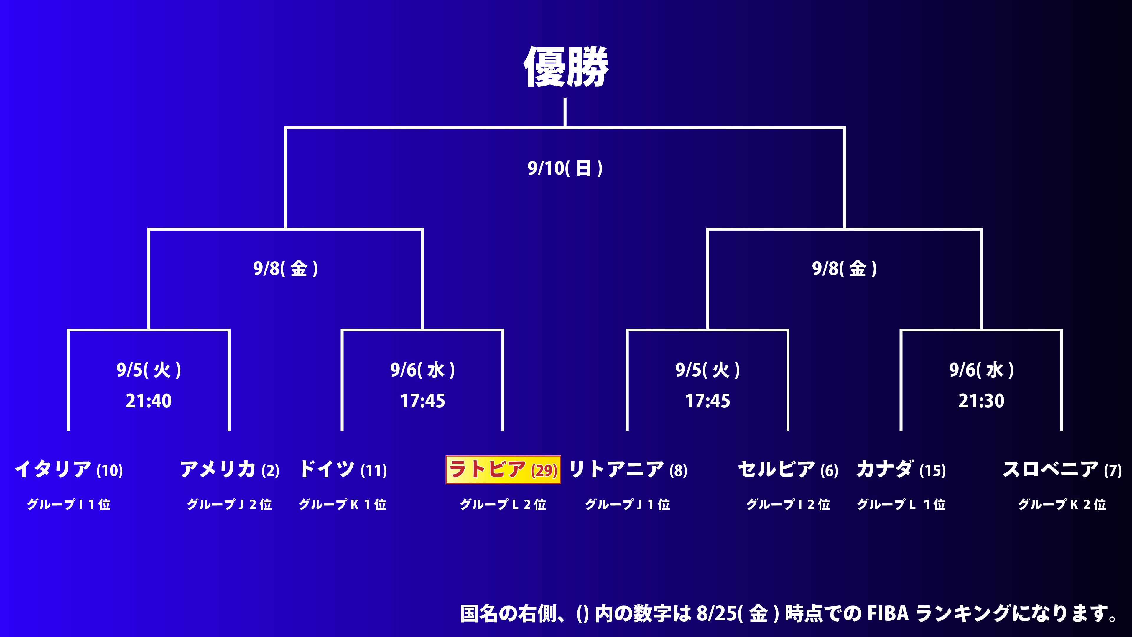 9/6(水)17:45 ラトビア(29位) vs ドイツ(11位)