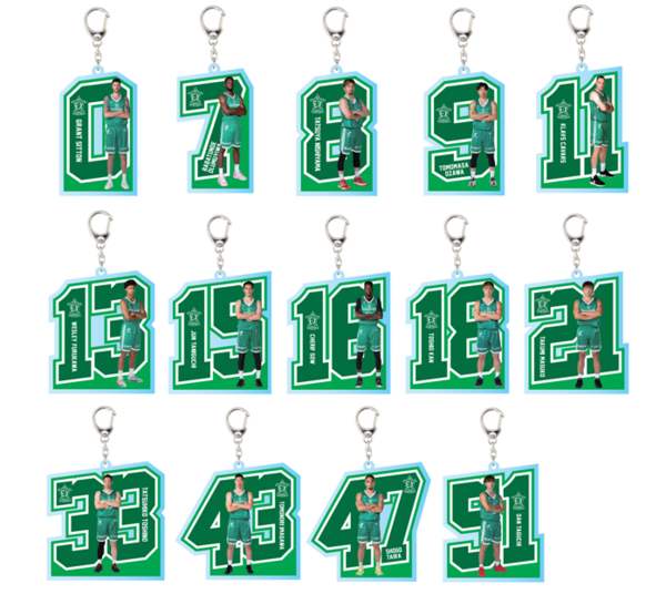 ◆ネーム&ナンバーアクリルキーホルダー 各500円(税込)