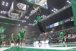バスケ×ティラノのコラボ、ぜひアリーナでご覧ください!