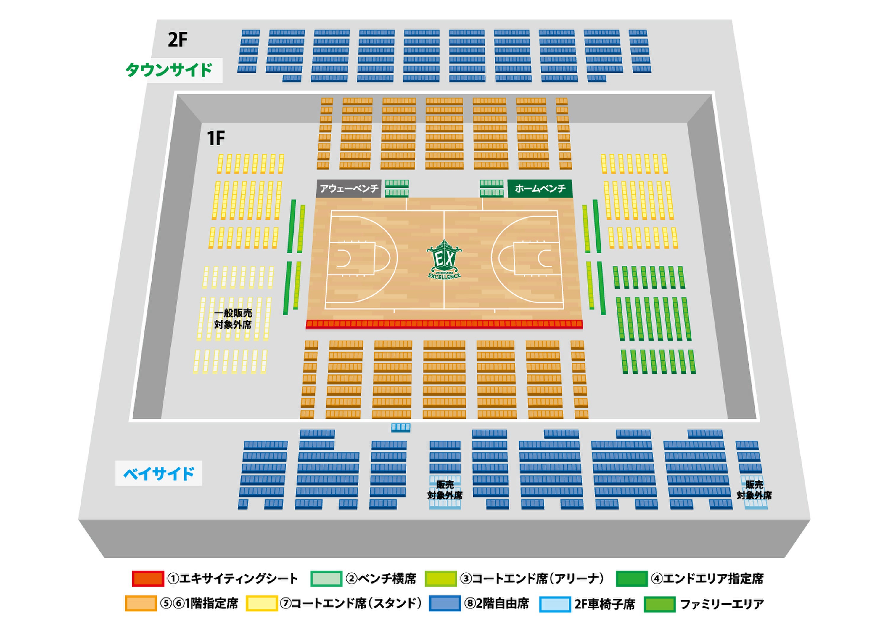 ※エンドエリア指定席(1列目)及び2階自由席は特定のお座席のご用意はございません。エリア内の空いているお座席にご着席ください。試合直前でのご来場の場合お連れ様と並びでご観戦いただけない可能性がございます。予めご了承ください。