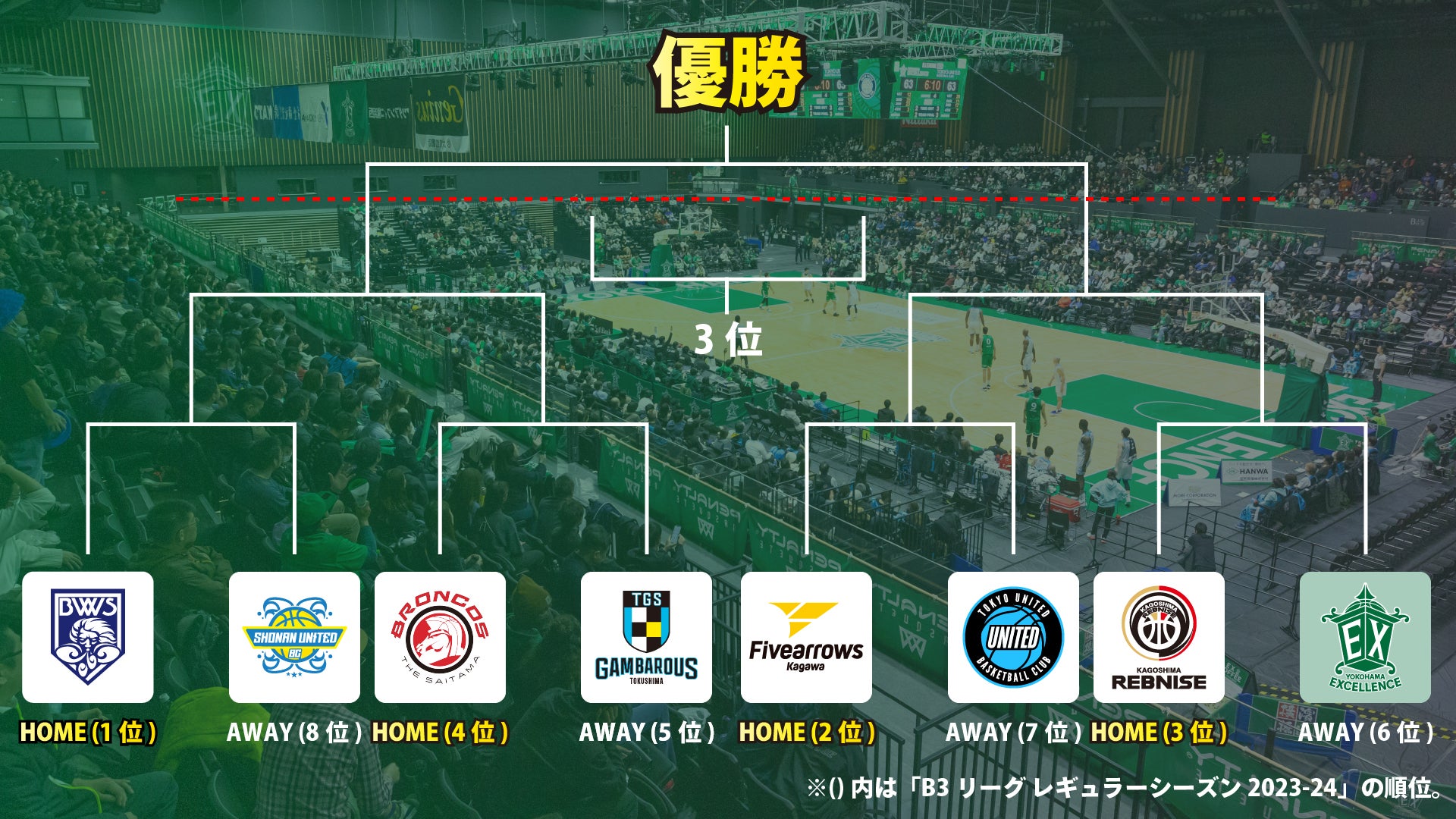 ※横浜エクセレンスが「B3 PLAYOFFS SEMIFINALS 2023-24(※準決勝)」を勝ち上がり、対戦相手のクラブより「B3リーグ レギュラーシーズン 2023-24」の順位が上位だった場合のみホーム開催
