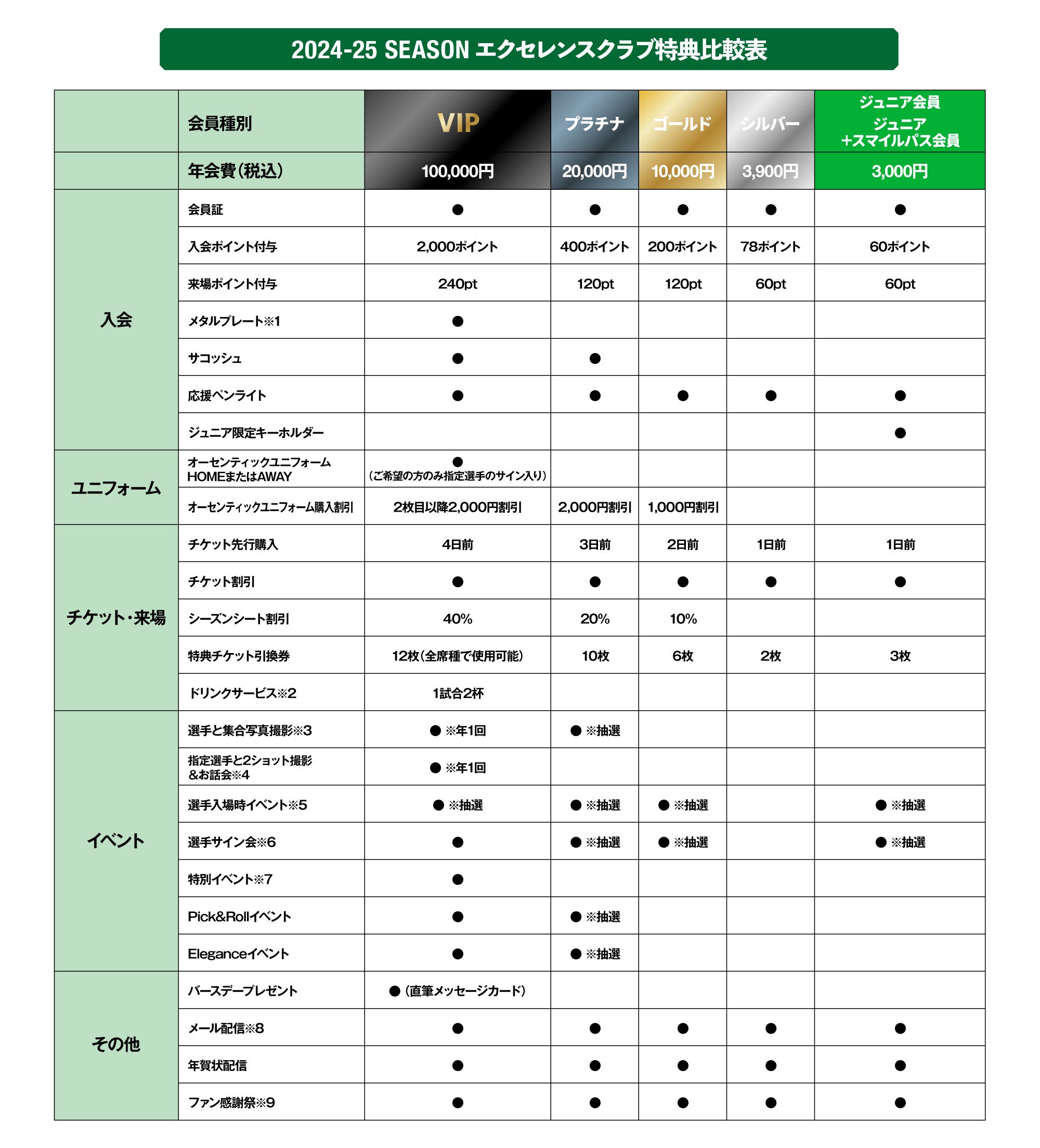 2024ー25シーズン 「エクセレンスクラブ」会員募集中!(9月2日更新)