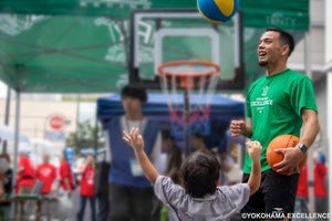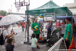 鶴見駅前が1日限定スポーツ体験広場になる「つるみスポーツDAY~子どもに夢を、区民に健康を~」を初めて開催し、横浜エクセレンスからも #47 平良彰吾 が参加しました!当日はバスケットボールのシュート体験のほか、