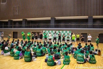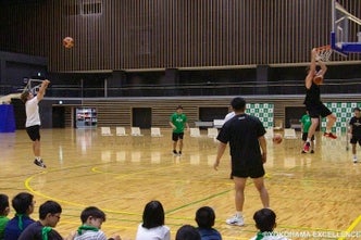 就任式の後は、チームの練習見学をしていただきました。ダンクシュートも飛び出し、児童の皆さんは大盛り上がりでした!