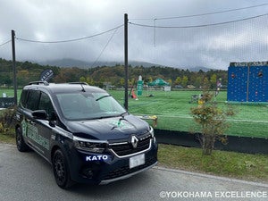 「山中湖交流プラザ きらら」に集まったたくさんのKANGOOとともに、横浜エクセレンスラッピングのKANGOOも並びました。寒い中でしたが、参加してくれた子どもたちは何度もシュートチャレンジに来て楽しんでくれたようでした。