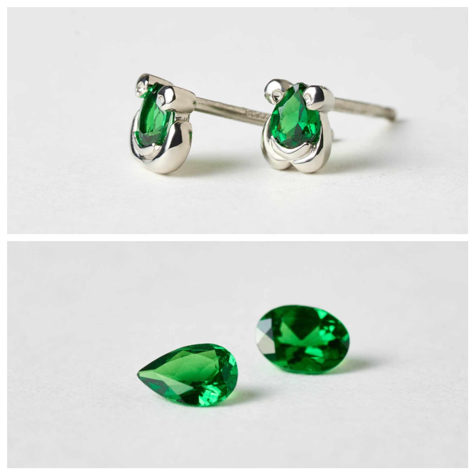 Pick&Rollをイメージしたピアス。ペアシェイプとオーバル、形の違うグリーンガーネットを選んでPickとRollのシルエットを表現しています。