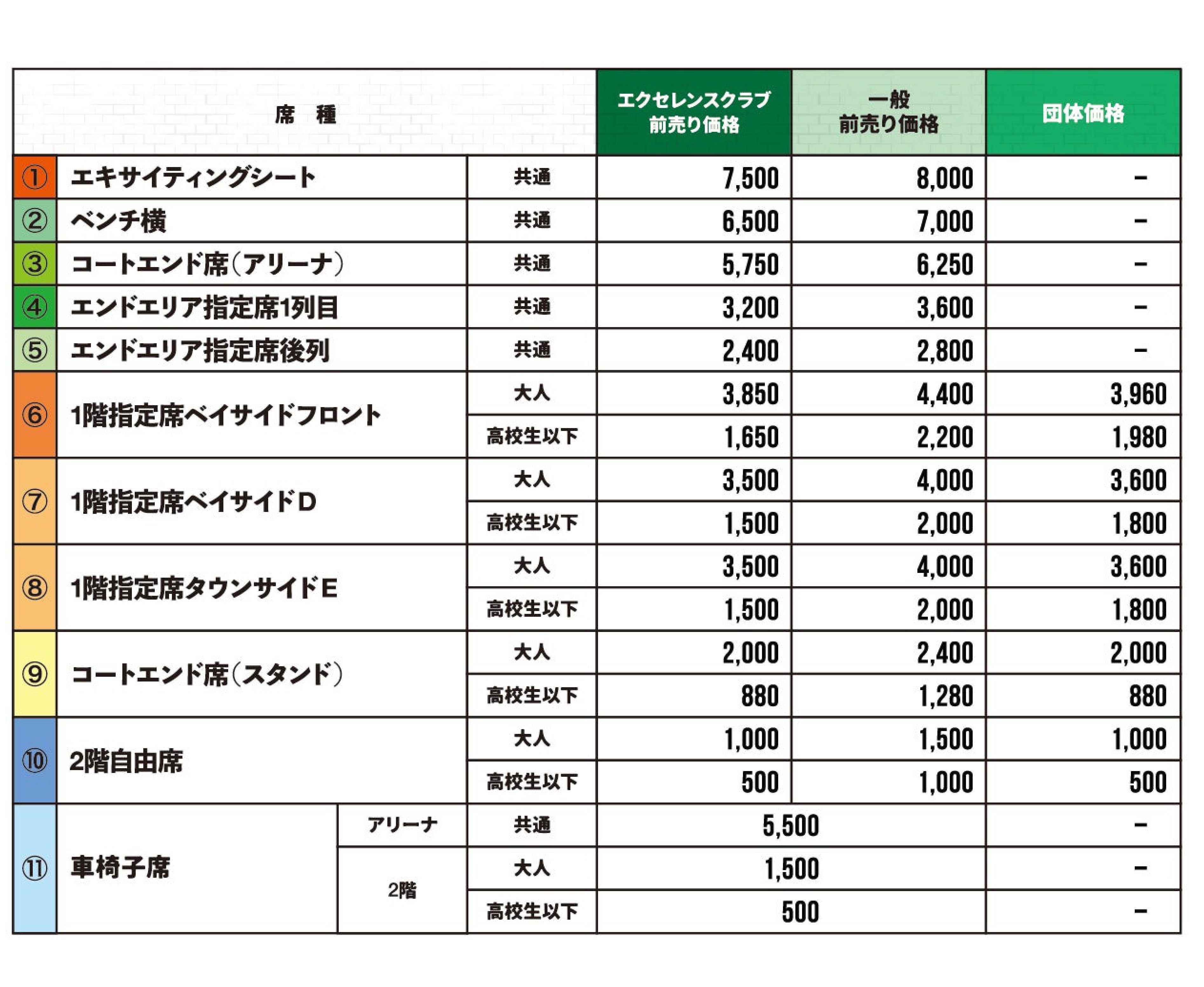 シーズンシート先行販売では、上記エクセレンスクラブ前売り価格にて販売いたします。