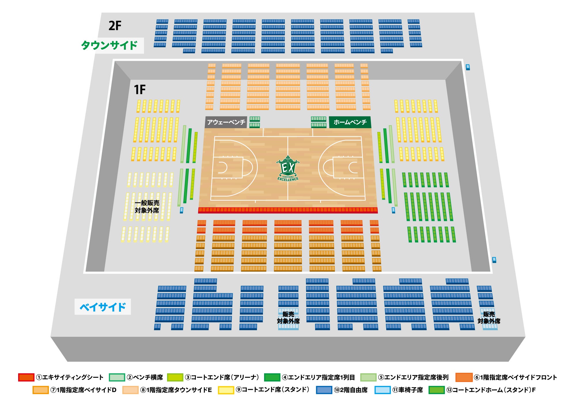 ※バスケットLIVEの配信スペースを新設いたしますため、2階車椅子席についてはホームエンド側へと変更になります。車椅子席のお申し込みはこちらからお願いいたします。(3月30日現在)